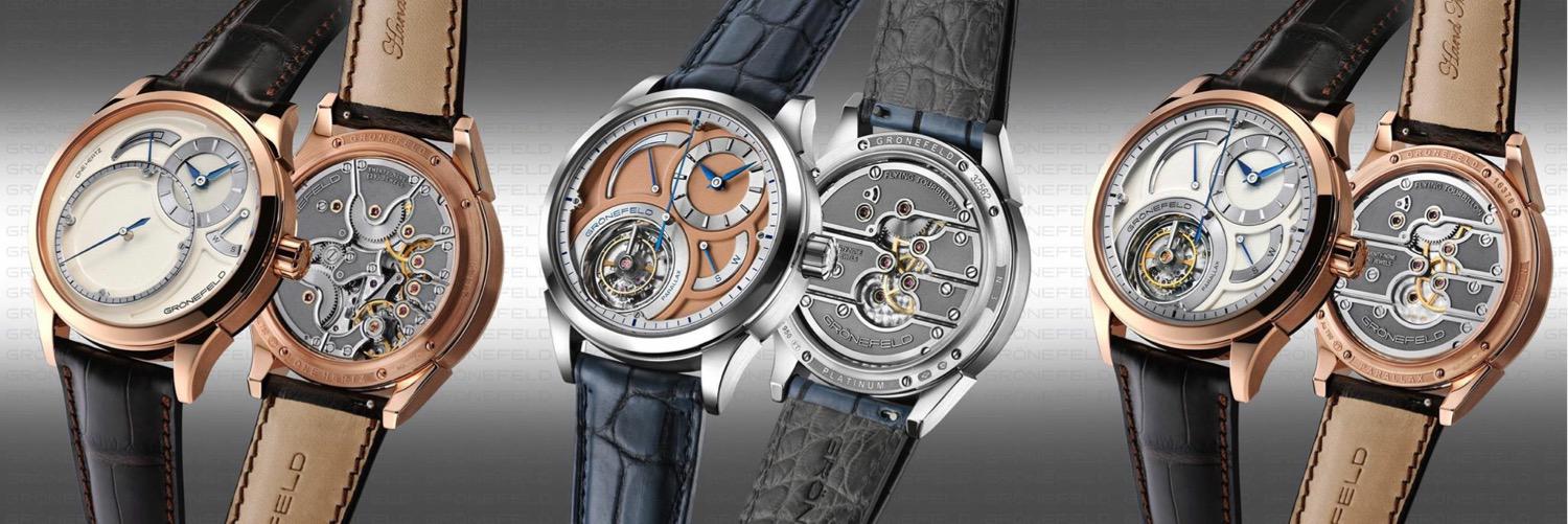Gronefeld Watches - Billing themselves as the Horological Brothers, Bart and Tim Gronefeld come from a family of watchmakers dating back more than a century to 1912. Today, the watchmaking Gronefeld brothers work together to create sophisticated horological works of art. Their watches, which have won Grand Prix de Horlogerie de Geneve awards, include the Parallax Tourbillon, Decennium Tourbillon, the 1941 Remontoire, and more.